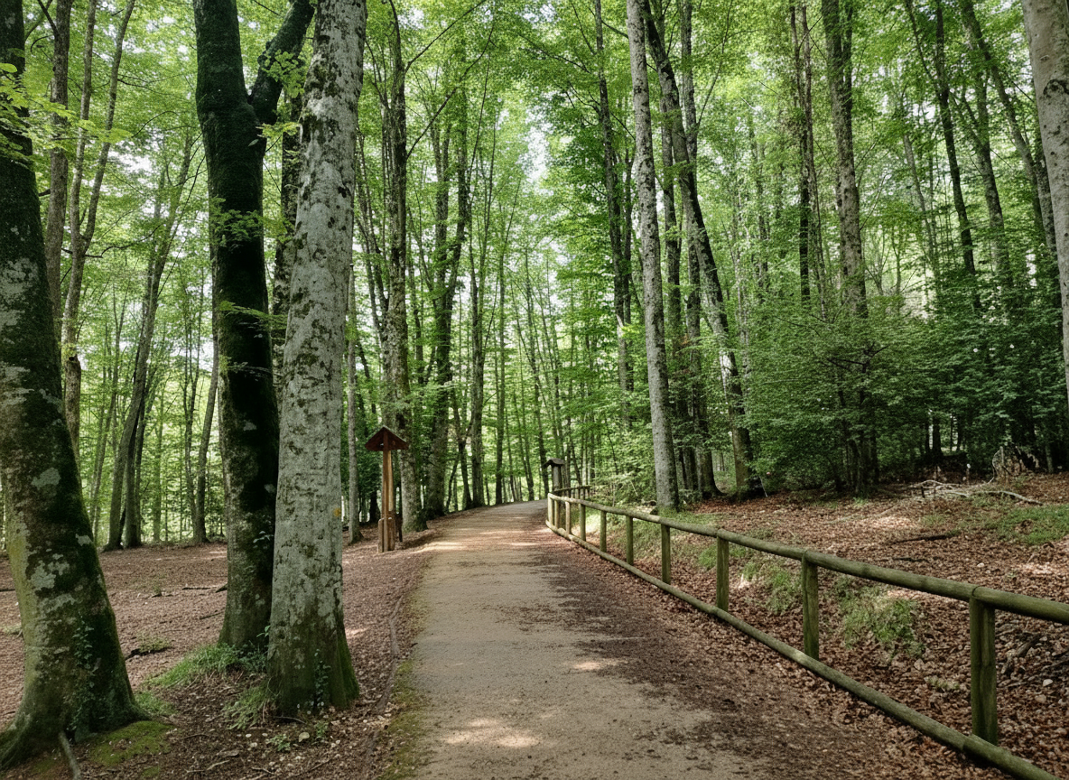 A network of marked trails crisscrosses the reserve, from easy loops to longer rambles that climb ridges and skirt hidden clearings. Interpretive panels along the paths reveal the ecological layering of the forest—Mediterranean scrub at lower elevations giving way to deciduous giants higher up.